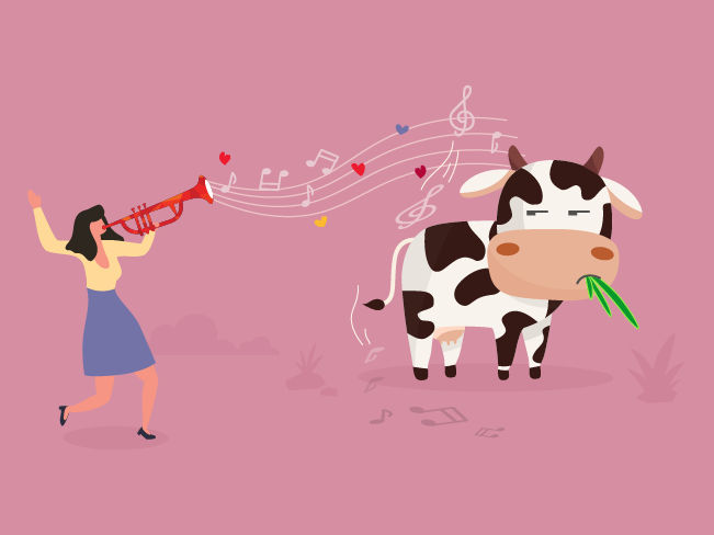 He realised that he was not being ignored because he was not playing well, or because the songs were not beautiful. Rather, the music that humans appreciate is just not what cows look for in “music”.